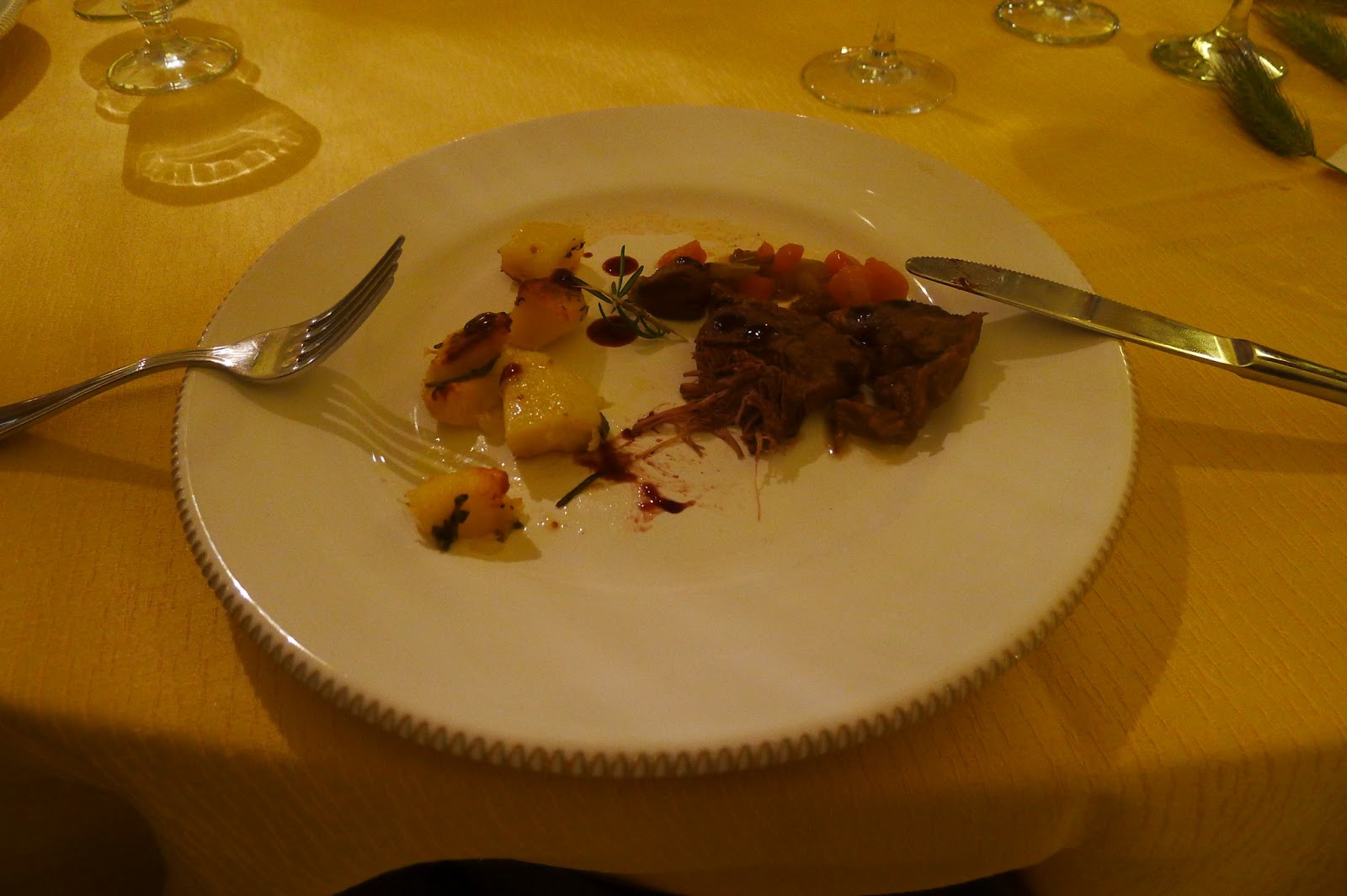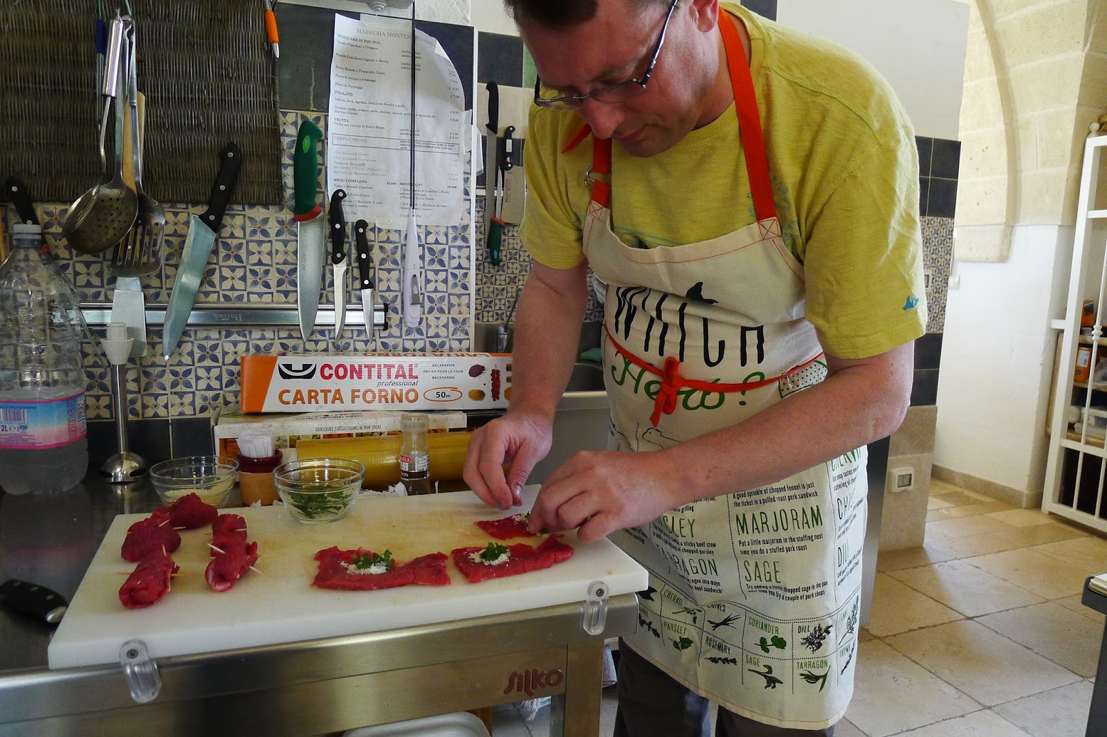 Fry the Braciole in a saucepan, in Olive Oil until sealed all over, pour in a jar of Passata and simmer for 90 Minutes untill everthing is tender and the sauce reduced. The Sauce is served with the Orecchiette. I will talk more about the lemon dessert another day as I managed to drop mine as I was getting it out of the oven!