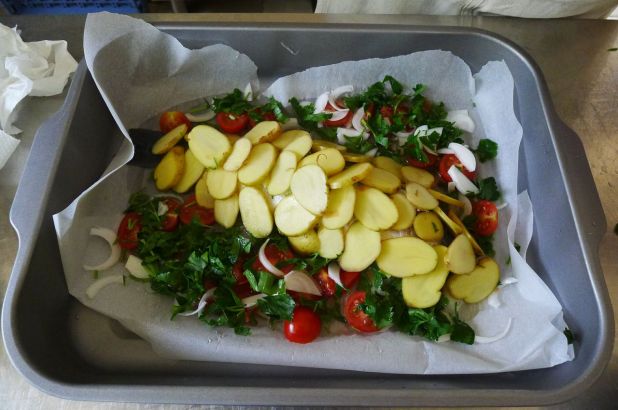 Back to the Focaccia, after the batter has risen, add loads of olive oil to a tray, and also cover your hands in it too, tip the mix into the tray and gentle spread out to the sides, I used a combination of ‘exotic’ cherry tomato’s and Rosemary to decorate the bread and enhance the flavour. Mine looked like this when ready. I let it rise for about another hour before putting in the oven to bake.