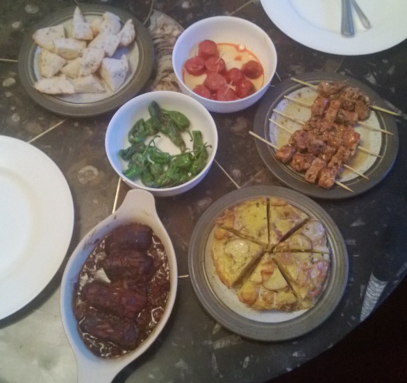 I also cooked Padron Peppers, renowned for their russian roulette heat, 1 in 3 or 4 are scorching, and a Tortilla which was also delicious. We enjoyed the various dishes over a couple of hours or so, and loved the recipes of Omar Allibhoy, the guy is pure genius..