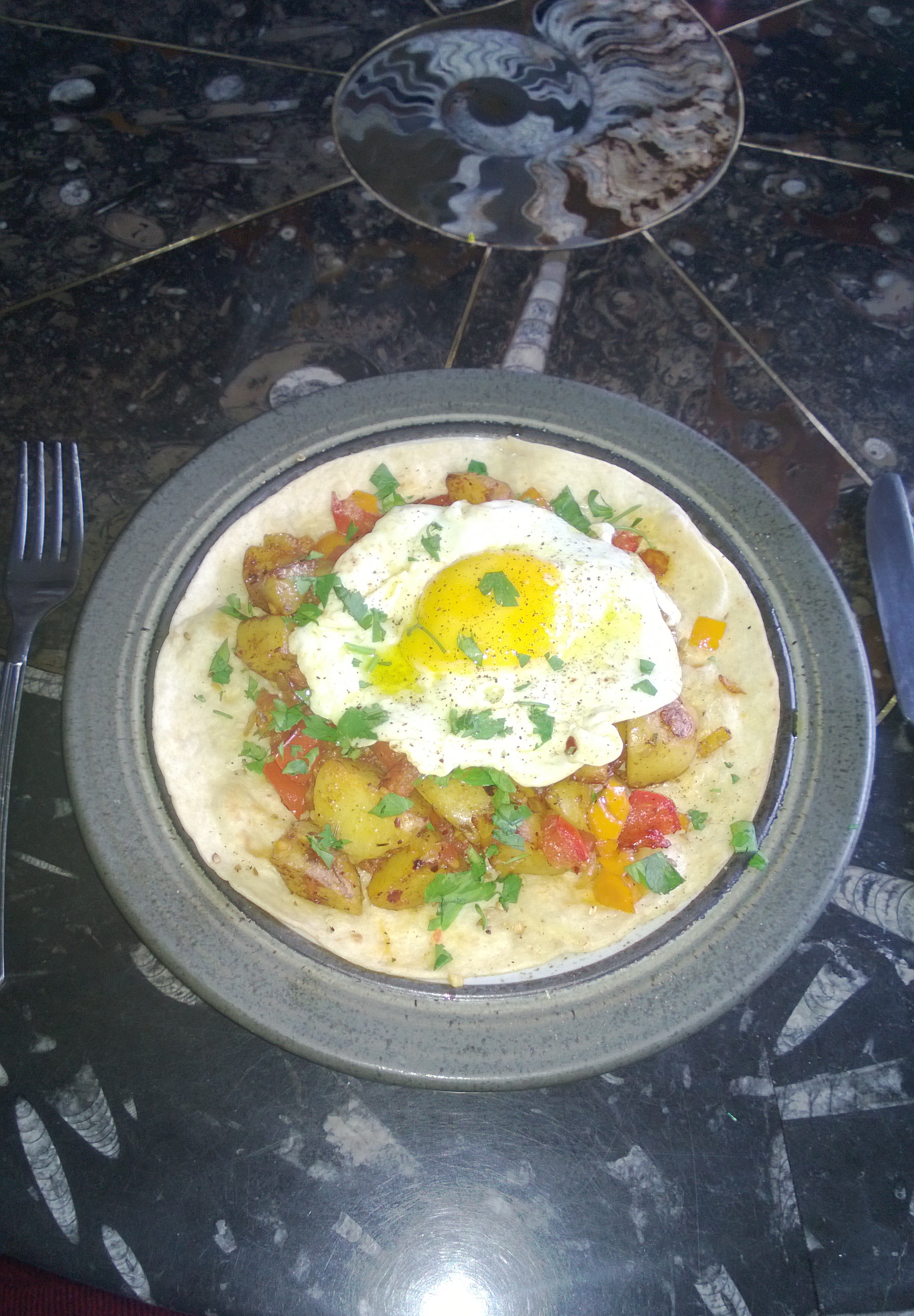 The ‘boss’ was out when I cooked this, but I reserved some of the vegetable mixture and folded the Tortilla into a quarter, and it was devoured when she came home!