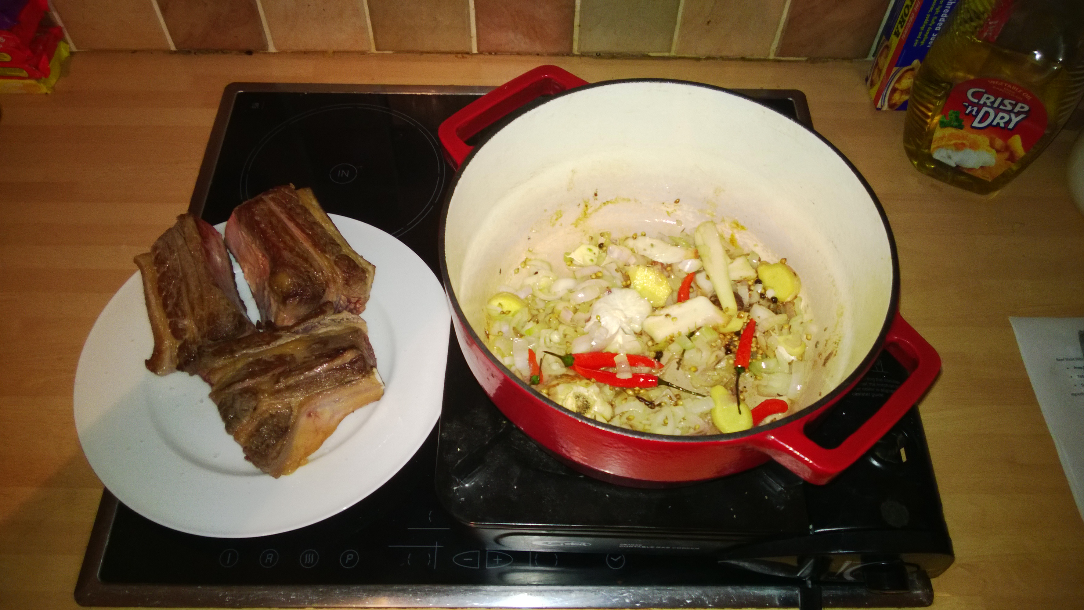 Now that the spices are toasty the next stage is to season the ribs with Salt & Pepper and seal in some flavourless oil such as Ground Nut or whatever you have available. We are trying to get some colour on the meat and also release some of the sugars which turns the meat brown. You can click HERE for a really geeky explanation of the Maillard reaction which is what we are trying to achieve.