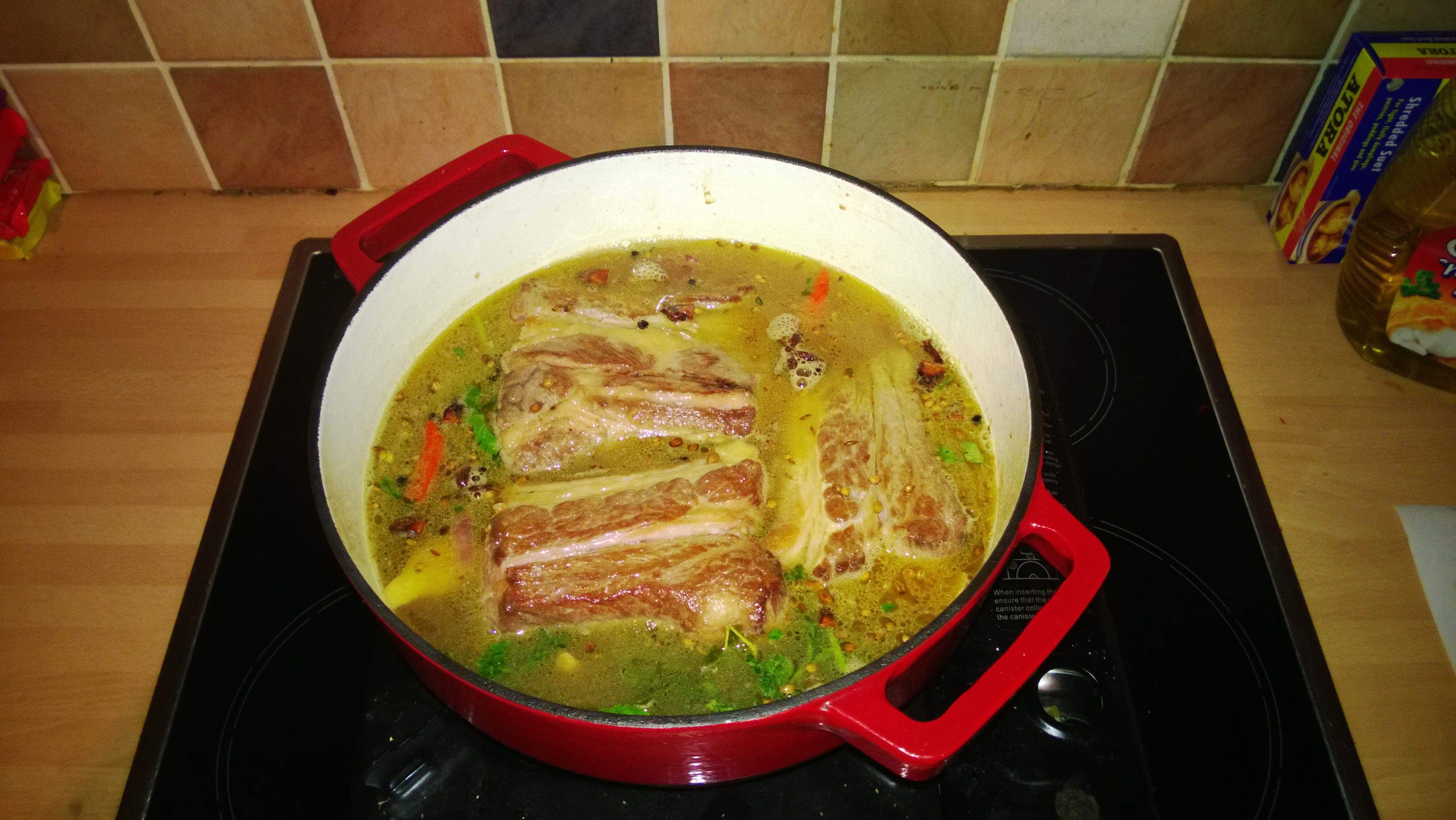 We now need to put some oil in a dutch oven or decent size saucepan, the Ribs’s are going to braise for 4 1/2 hours at 125 Deg (fan), 145 Deg (Convection) and the meat needs to be covered so use this as you guide as to the size of pan to use.