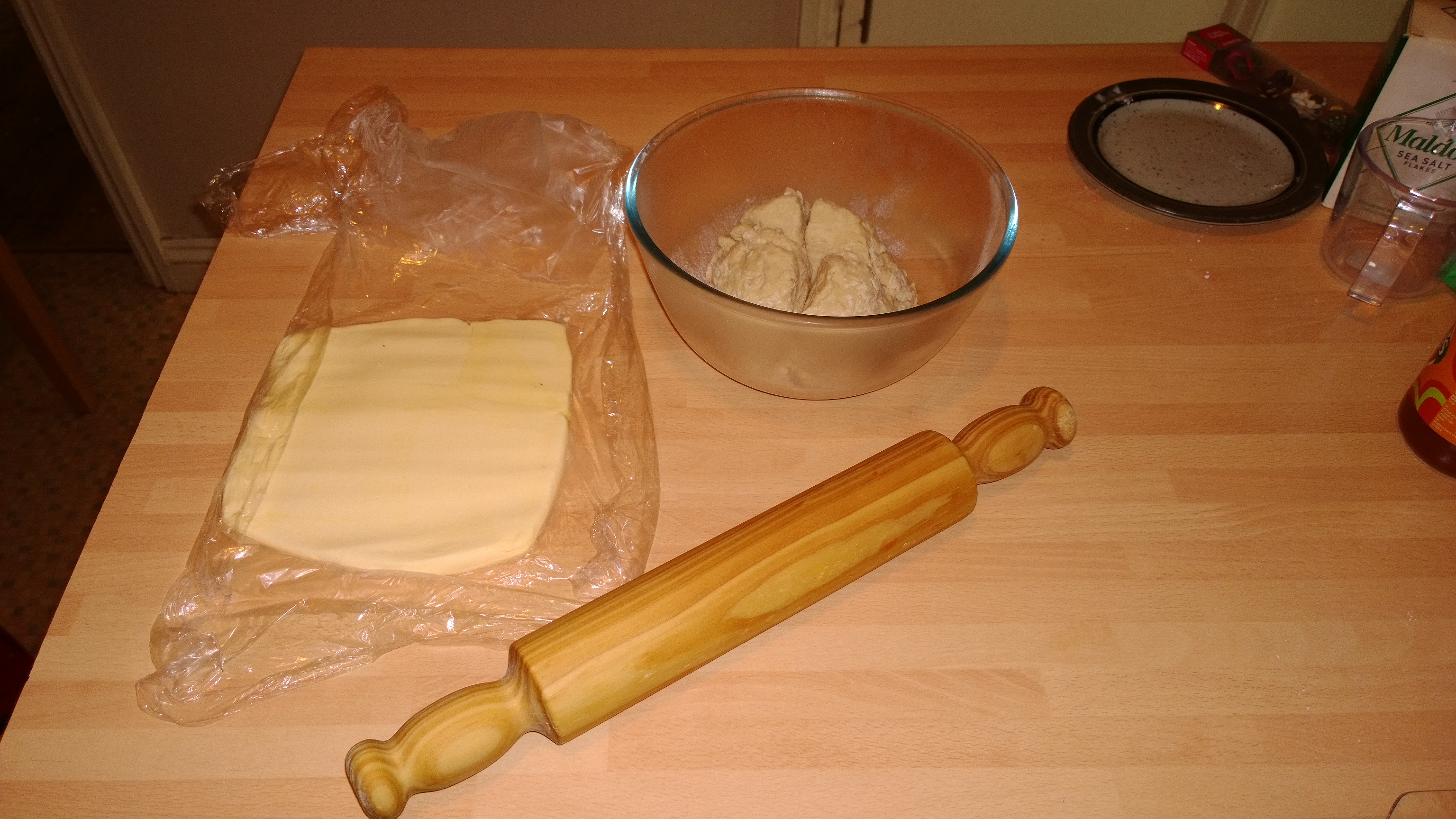 There a two ways of folding to create Puff Pastry, Double Book and Single. Double Book is where you take each end and fold it into the middle. Single is where you fold ONE end in, and the other overlaps. Just for a challenge I went for single, which requires 6 folds and 1/2 hour resting in the fridge after each (Its not a fast process!). This is mine after fold three, the finger dimples are intentional to enable you to remember where you are!