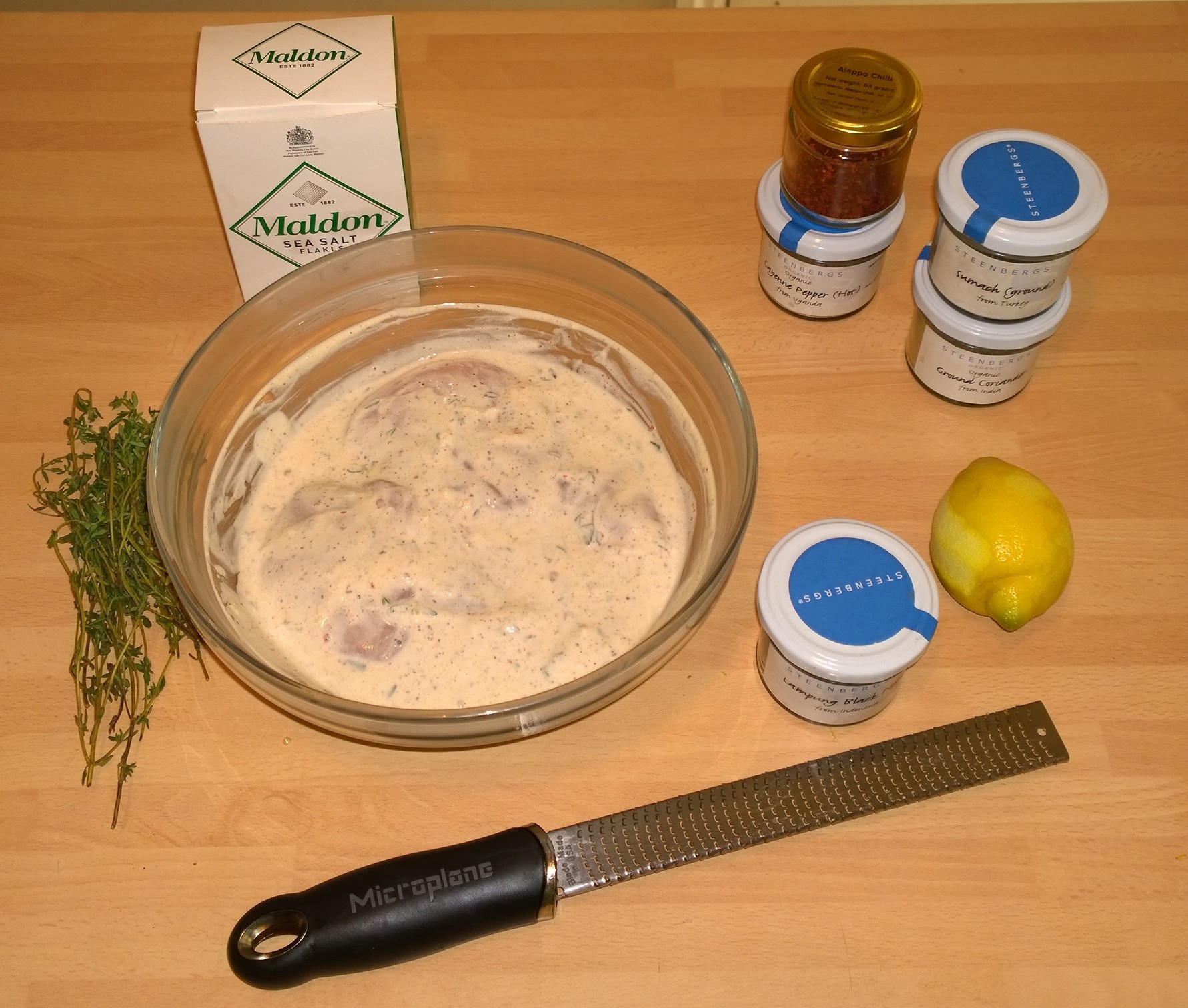 Mix all the ingredients in a bowl and add the Chicken, making sure its well coated on all sides, cover and stick in the fridge for 2 -3 hours or overnight if possible.