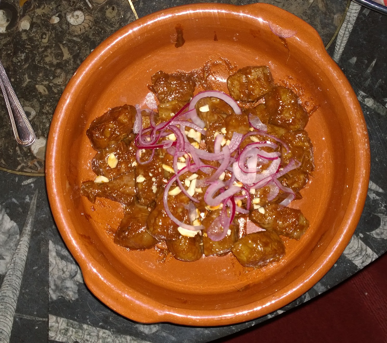 The 2nd change was adding a small amount of MSG, a naturally occurring non-essential amino acid ,in the form of MAGGI liquid seasoning. You can buy MSG from Oriental Supermarkets, or use a few drops of the Maggi Seasoning which is generally available. Its adds an extra ‘savoury’ or ‘Umami’ flavour giving s boost to the richness of the dish, this detail was in the page google found.