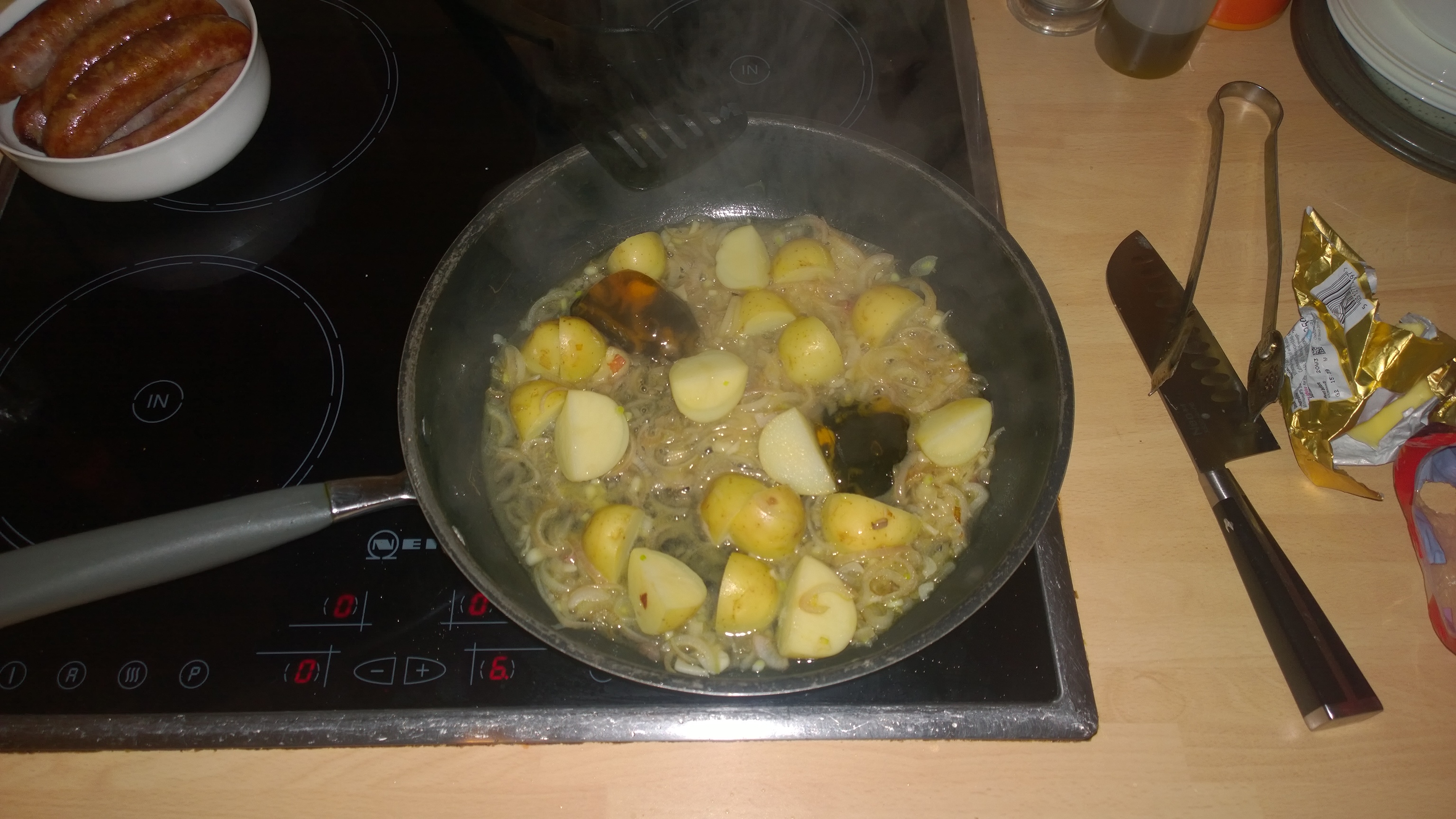 - 3 Sausages per person (get REALLY strong flavoured ones like Toulouse if you can, it makes a big difference)
