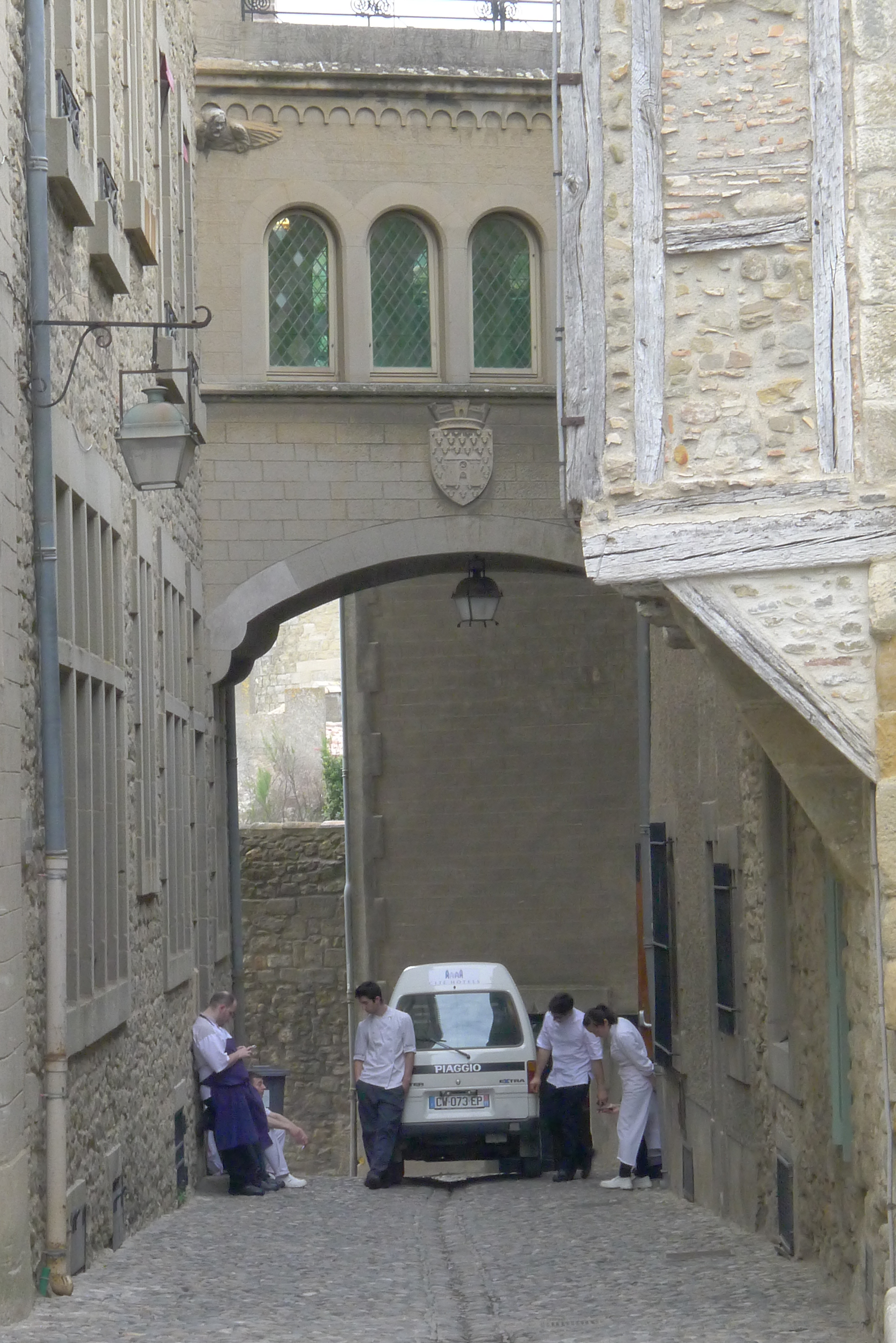 Talking of Carcassonne, the picture above is in the City at the side of the la barbacane, the chefs taking a quick break before service.