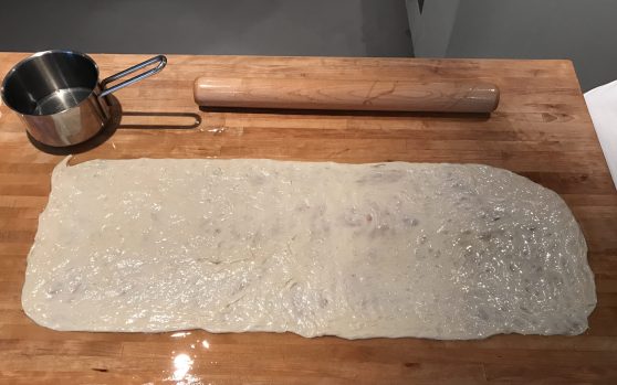 There are several variants of this dessert, we were going to make both a sweet and savoury version. Once spread gentle rolling is required, I was fortunate to be working with Vivien, who unfortunately had broken her arm a few days previous but still joined in as much as she could. If you have an interest in Preserves, please check out http://www.vivienlloyd.com as she is an expert in traditional methods and runs courses etc. (I didn’t get paid for the plug btw, she was great fun to work with).