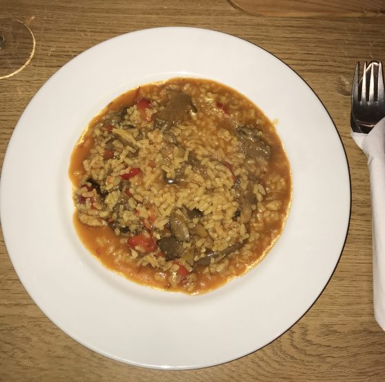 You can see the slightly ‘sloppy’ nature of the dish in the picture above. It is supposed to be like this, wetter than a Risotto it did taste subtle and was also delicious, the Paprika creating warmth and smokiness, the mushrooms meatiness and the Rice had textures but probably not the al dente described in Italian Cuisine, it was slightly beyond that stage.