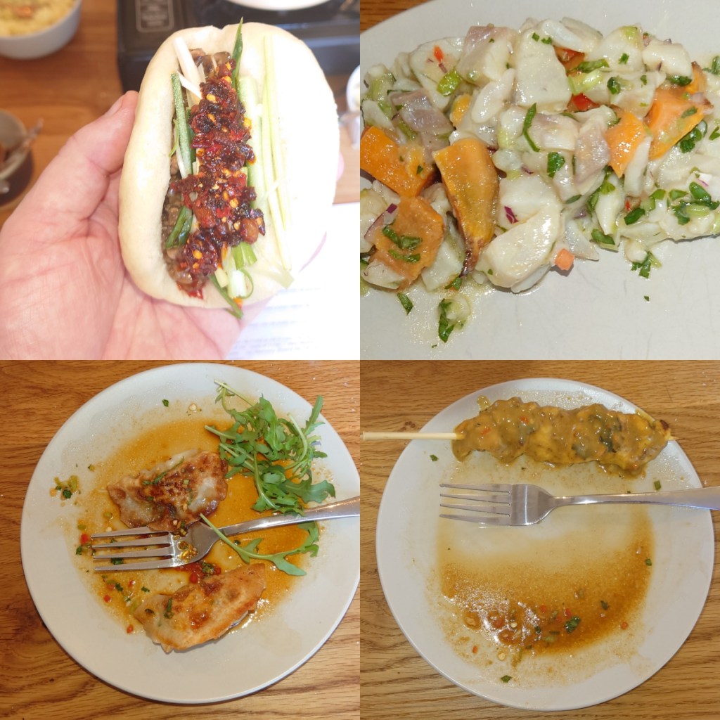 So, the menu of our world tour went something like South Asian Chicken Satays With Peanut Sauce (not that claggy stuff you usually get in take-aways), Bao Buns, Ceviché, Gyoza, Aloo Gobi and ‘Mexican’ Churros with Chocolate Sauce (They are subtly different from the Spanish ones).