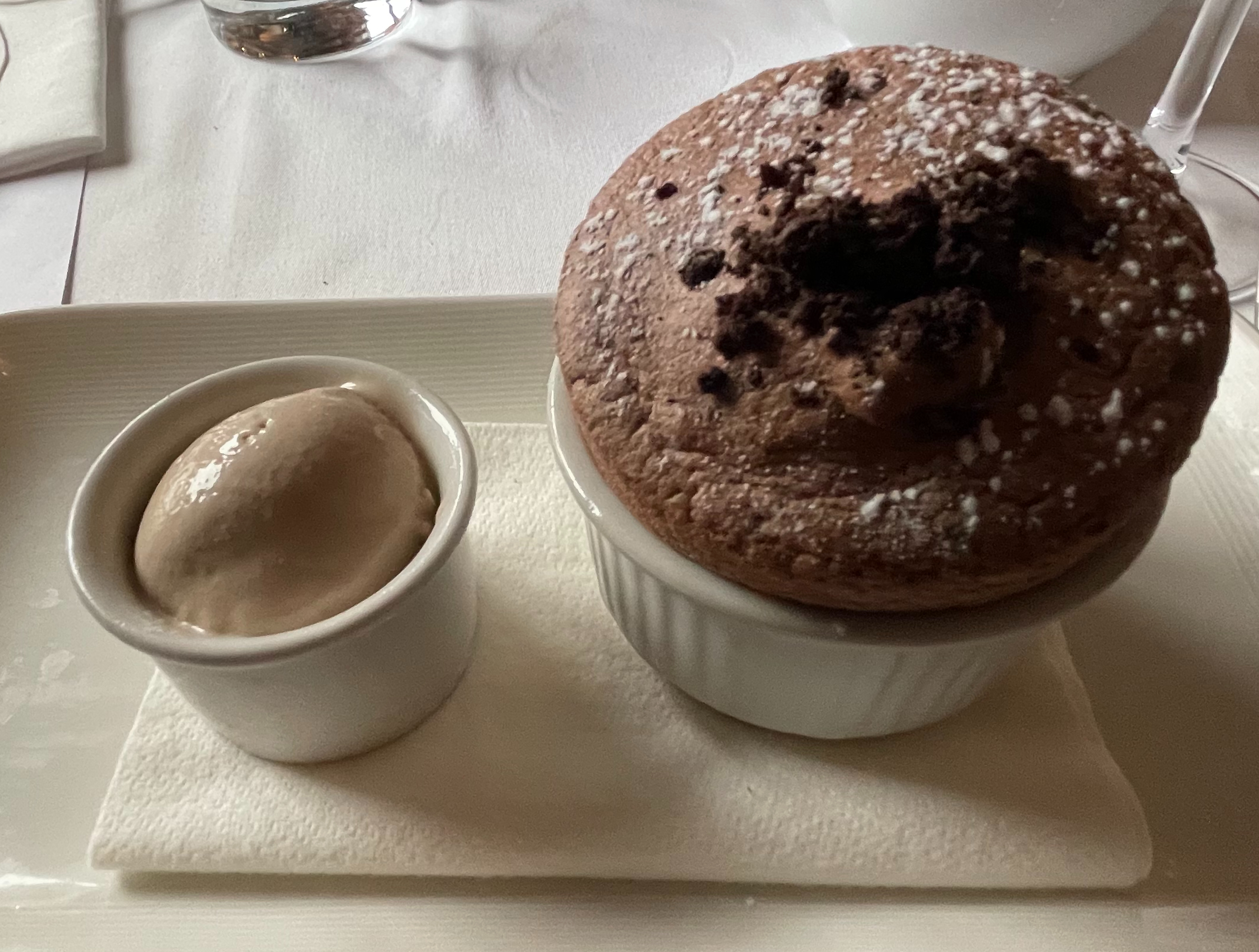 Lets have a Valrohona Guanaja Chocolate Souffle with Tonka Bean Ice Cream. Another belting dish, I love Tonka Beans and have used them in a variety of dishes at home. It has a unusual flavour, like, but not like Vanilla, it’s difficult to explain, but paired with the souffle went perfectly.