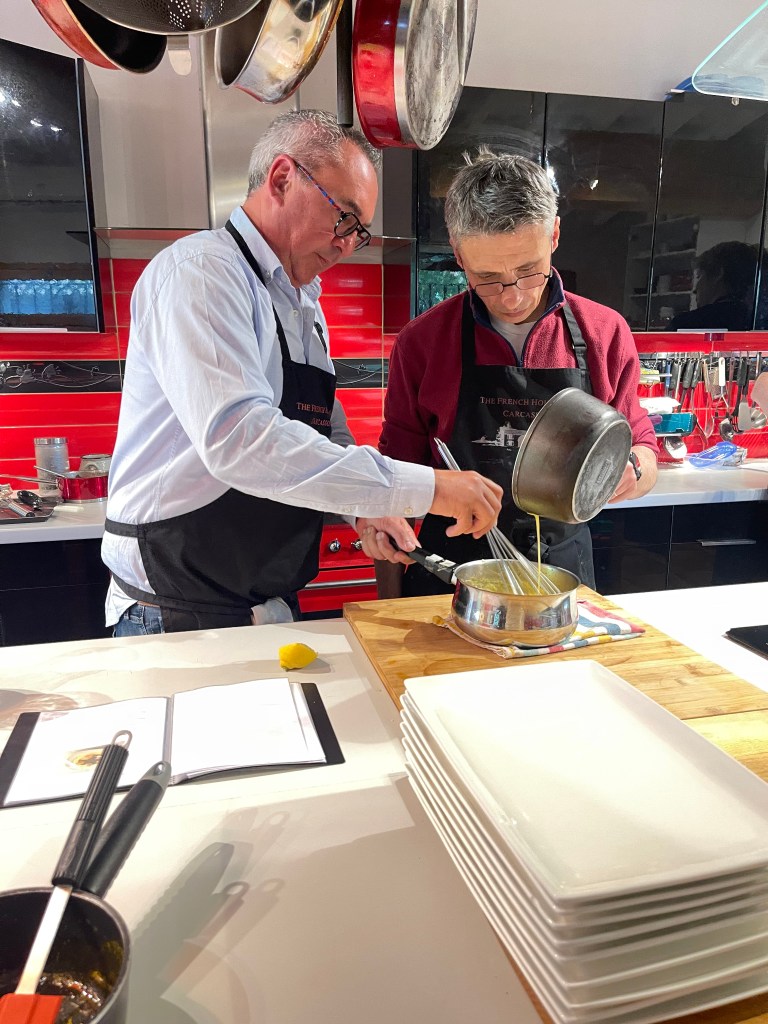 We had an extra guest on Monday, Didier, who lives near Carcassonne and was here for the day, a very keen cook whose wife had gifted him a voucher for the French House Party Cookery School, he was really nice and after some introductions during breakfast we all got on like age old ‘chums’, who may have shared an illicit cigarette or two behind the bike sheds after school, nuff said he was fab, fitted in which sounds so awkward, we worked together as a cohesive team, chatted during breaks, sharing stories and experiences, he was just lovely.