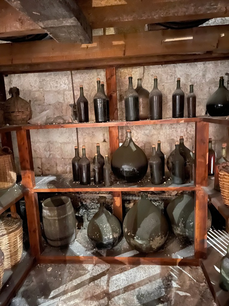 We had a guided tour of the old Kitchen which was fascinating and the cellars, where maturing takes place and where some VERY old and special (expensive) bottles are locked away, you can see some of them in the middle picture above, we then got to taste the difference between 3 Armagnacs, 10, 20 & 40 years old.