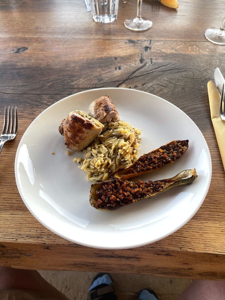 The Game Pie tasted beautiful, the Duck (scrumptious) was served with some Orzo Pasta and the vegetables we had purchased, produced to our own specification. Rad and I hollowed out the Courgettes we had picked, and stuffed them with lots of yummy flavours. On the road back to the airport the following morning, we drove past fields and fields of Sunflowers, all bowing away from the sun, very beautiful indeed, and quite strange.