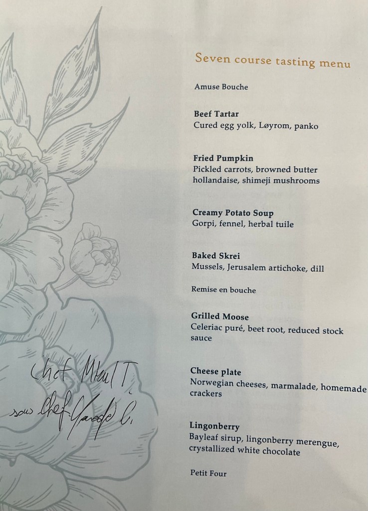 I was so relieved, almost to the point of having the sweats which then dissipated in seconds! I had picked Full Steam for one reason…….Whale. It was on a previous menu that I had seen and I was mentally torn as to the morality of eating such animals, luckily it wasn’t on the menu so I opted for the Reindeer Stew instead. Hey, before you start saying that is just as bad, Reindeer in Norway (and Finland) is no different to Beef in the UK, except they are treated better, not locked away in cages for months because of the cold, and they are typically organic and not fed artificial feed to ‘beef’ them up. I have since discovered it’s an evening starter option!