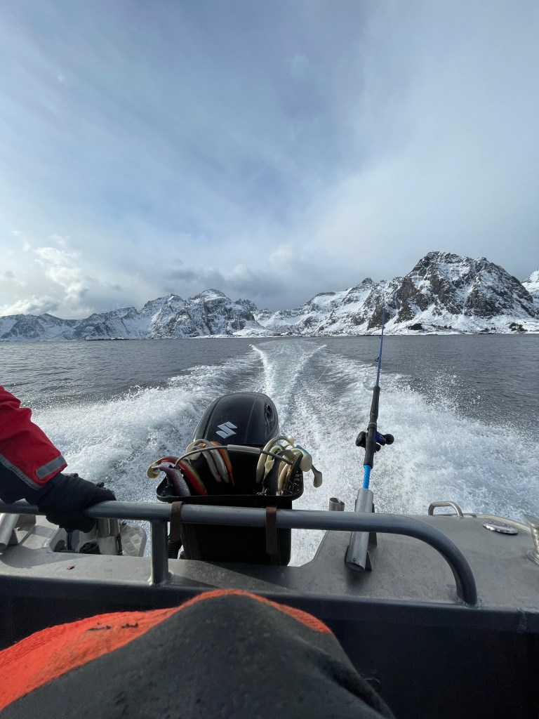 Let’s go Arctic fishing, hell yes….. After lunch we had our fishing trip and after making sure we had enough warm layers on, we donned flotation suits which also acted as an insulating layer, and set off in metal ribs out into the cold (very), to see if the sea was going to provide us with some jewels in the form of fish. Our skipper Daniel was young but well travelled and experienced using a sonar to try and find elusive shoals of fish.