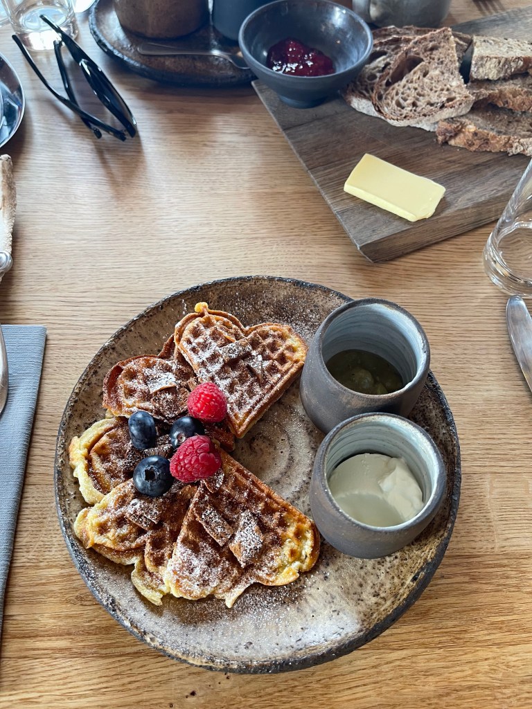 As we settled down to breakfast there was a lot of discussion about the previous evenings light show, which was amazing. The breakfast menu at Holmen provides some recognisable options including local Bacon and Eggs and some more local delights such as Waffles with Brunost, the local Goats Cheese Whey that is boiled down to provide a brown Cheese which is both sweet and savoury, it’s extremely nice, especially when served with Gooseberry Jam, Sour Cream and berries. It was my intention to avoid anything that looked ‘british’ and experience the Norwegian way as much as possible.