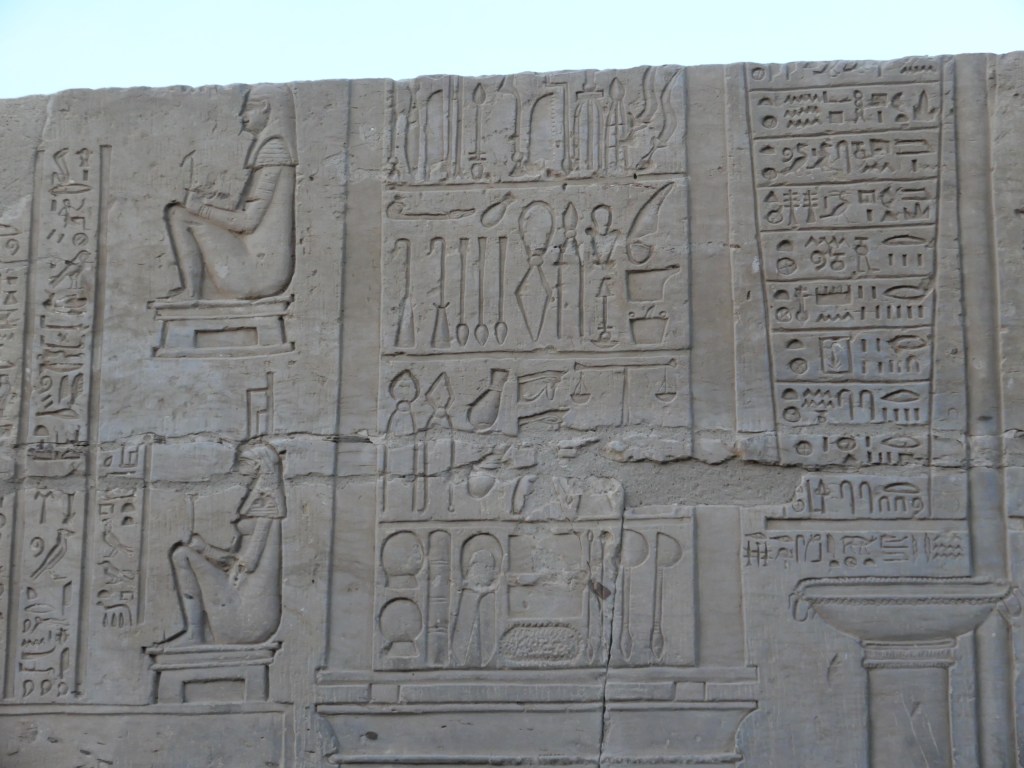 This particular relief is quite extraordinary, it’s probably the 1st known ‘picture’ of both childbirth and a mother feeding her child, this temple has some quite amazing depictions of life, but so long ago, the next relief shows what might be the 1st evidence of some of the medical paraphernalia that Egyptians used to deal with sick people and injured soldiers.