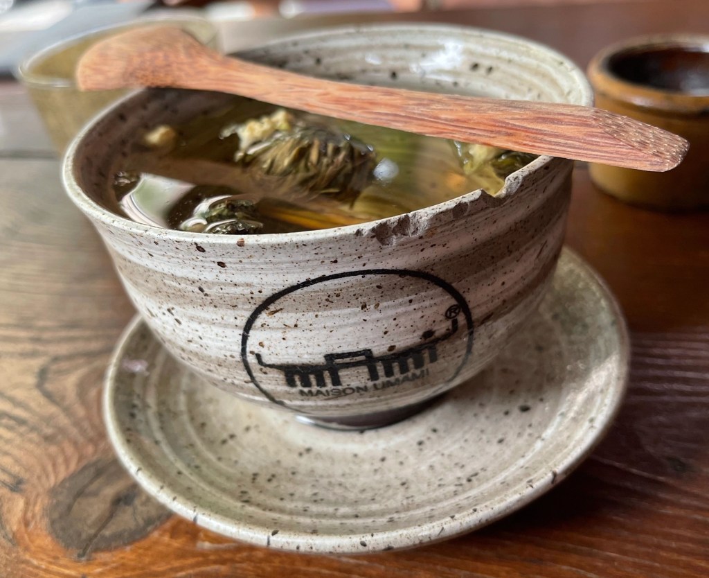 I love Jasmine tea, it usually arrives ‘processed’ in some way, but not here! Dried Jasmine flower heads and other aromats floated in a bowl of hot water, emitting exotic scents it was truly delightful.