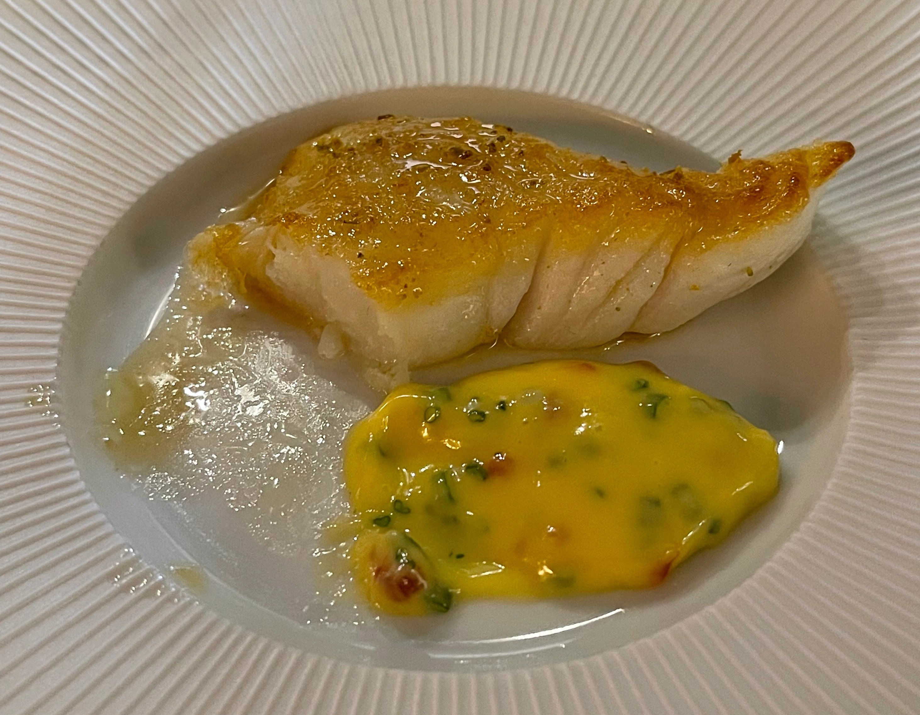 I was delighted, bright, glossy, a lovely consistency my Hollandaise was done. The Turbot, a fillet from a fish costing about £75, with only 5 – 6 fillets per fish was to be roasted, after some browning treatment on the hot plate. There are some techniques to understand when doing this, you can find out how by signing up for the course.