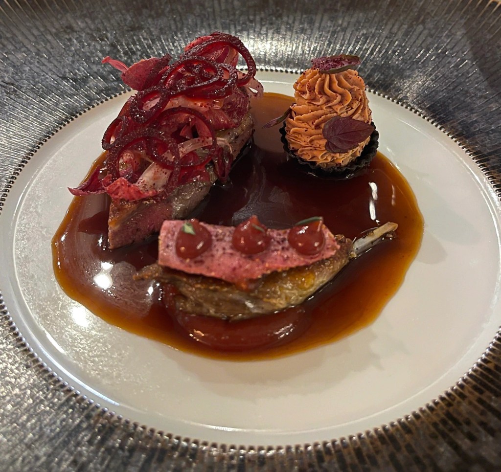 I won’t describe all the dishes this time, suffice to say the 1st course was a belter, I recognised the Cheese Scone, a delicious speciality of No.6 and featuring on the menu twice in different guises, the accompanying Blanc de Noirs from Alfriston in East Sussex, a pleasant treat being a UK sparkling wine, it was perfect.