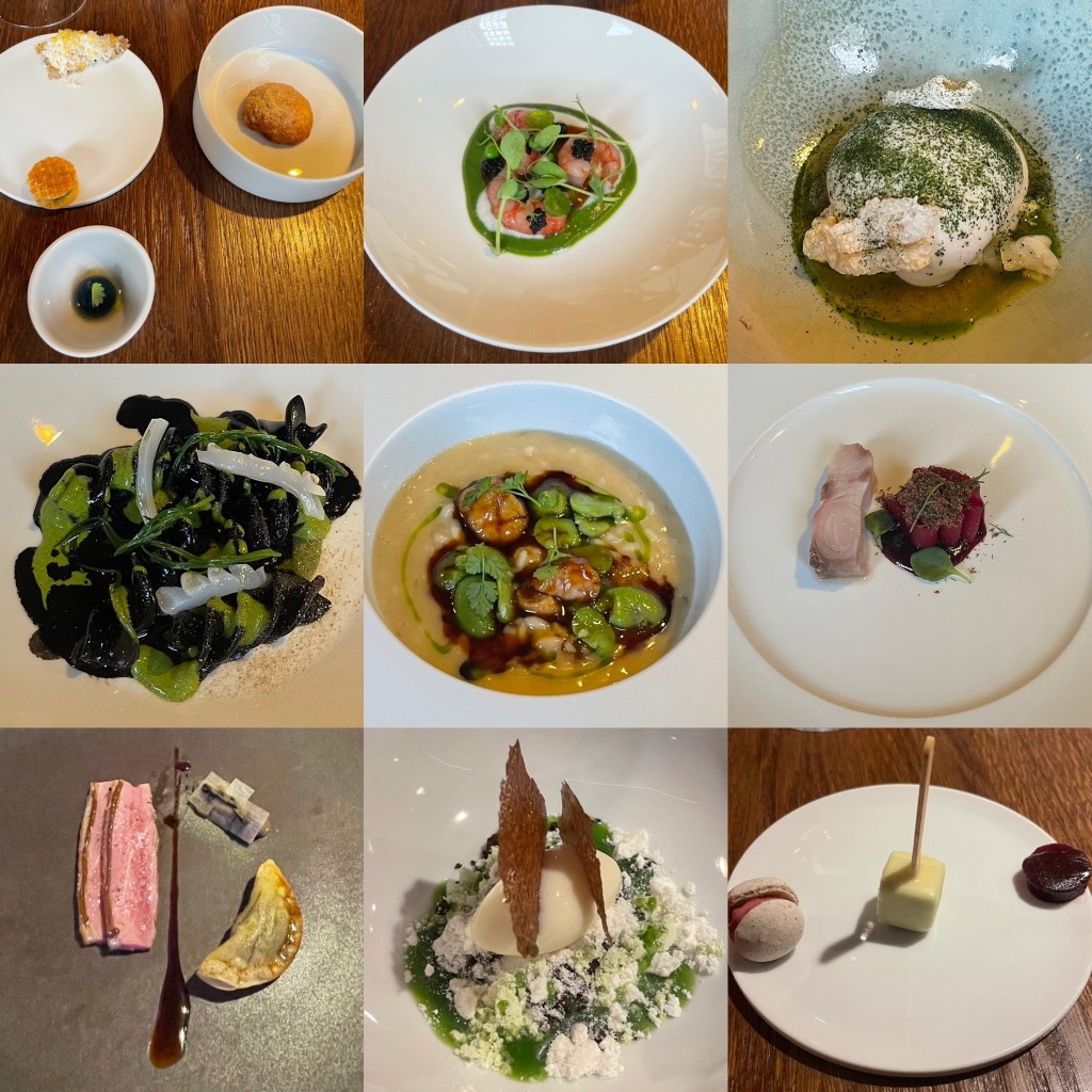 So, I chose the 9 course tasting menu, pictured above with wine flight, why not, a chance to see the expertise of both the kitchen and the sommelier, I was not disappointed in the slightest it was all just brilliant!