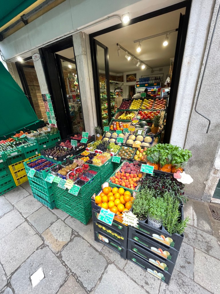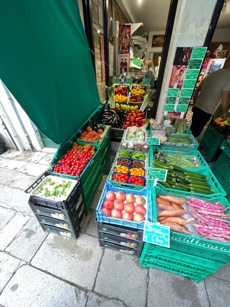 So things re-ordered I set out for the lunchtime destination via a variety of shops, trying to get into the Venetian way of life, the fruit and veg shops were beautifully presented as were the bakers and patisserie.