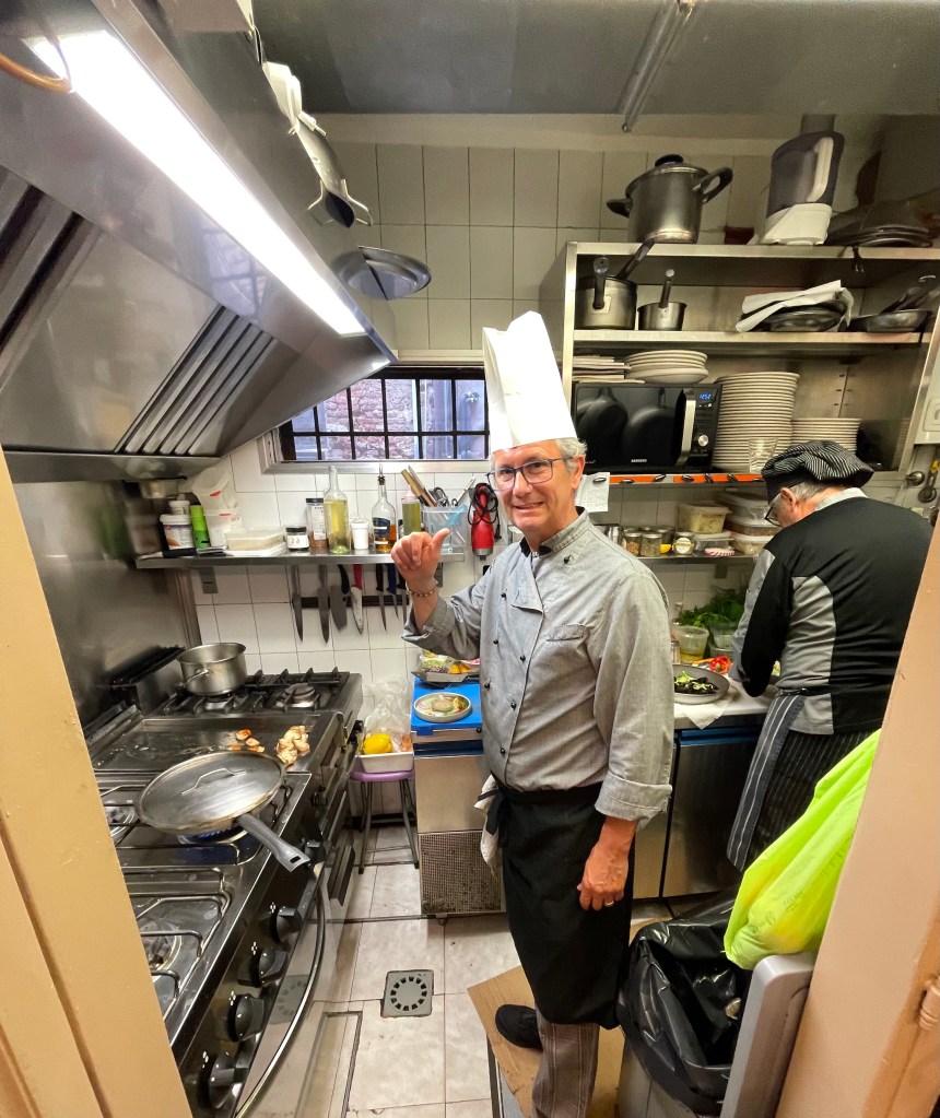 The restaurant only has 6 – 7 tables, it’s very popular, it’s extremely good, in fact awesome. Some amazing chefs have eaten here, like Angela Hartnett OBE, Stanley Tucci, my inspiration for the trip the late Russell Norman, Rick Stein the list goes on. They let me in the kitchen for a couple of pictures, petit, spotless, and organised I was struggling to think such as small space could produce plates of such wonderment and delight.