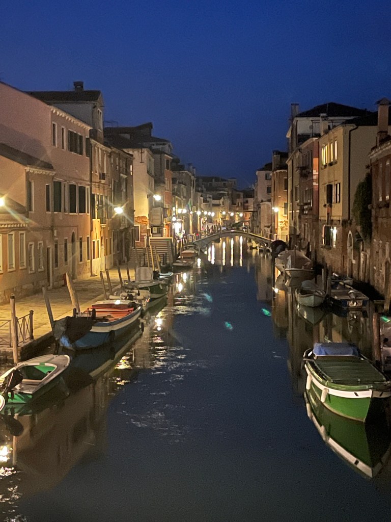 1. sounds fab, Jules. If you’ve got your laptop with you, try to find (&watch) Don’t Look Now, one of my absolute favourite films, set in Venice and starring Donald Sutherland, a fine actor who sadly died only the other day. The movie is most creepy and compelling, with the city at its most spooky. 😁