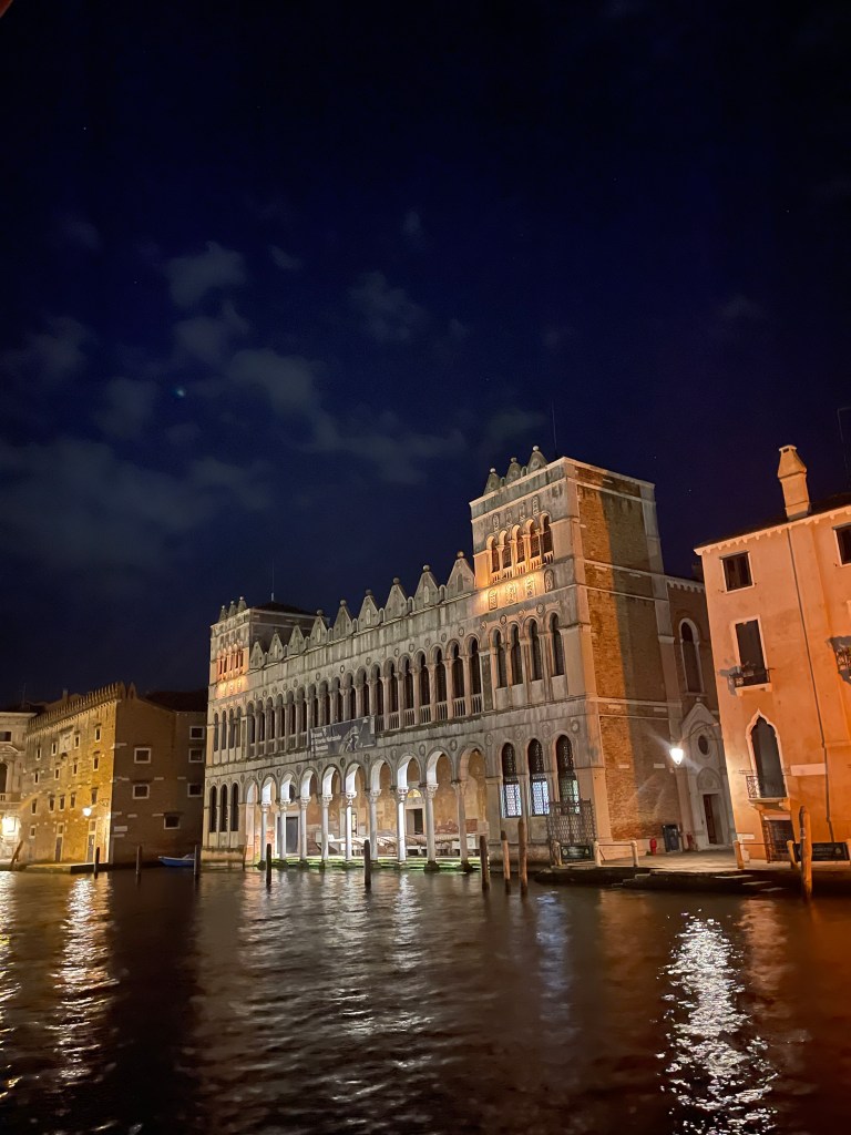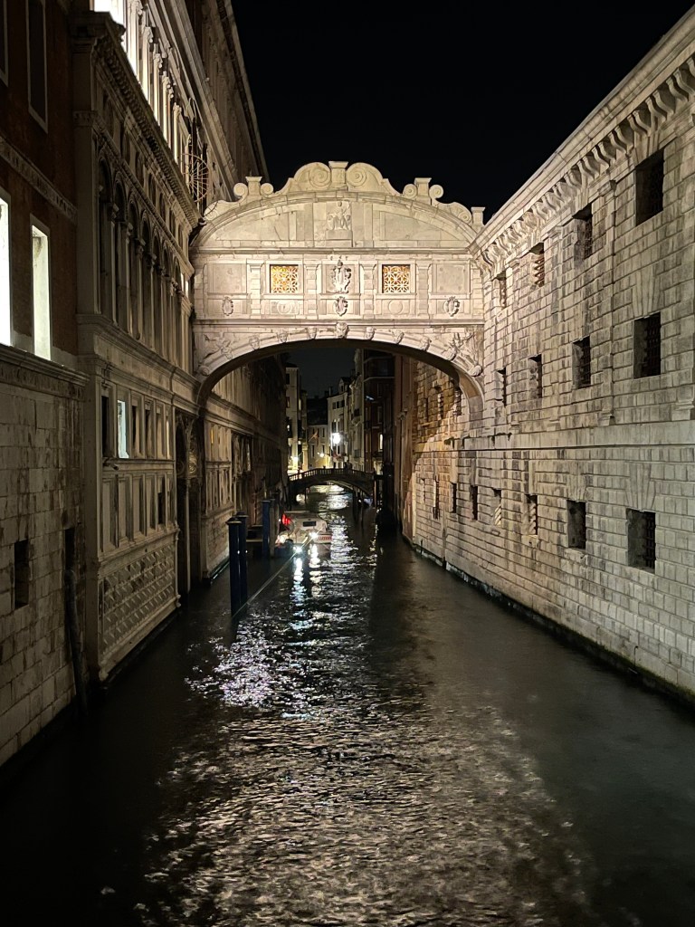 As I made my way back to the hotel it was late evening, about 23:17! and the streets were quiet, I was thinking about the day, the wonderful sights, the stunning food and amazing memories. St Marks Square was quiet, I ‘snagged’ a picture of the ‘Bridge of Sighs’, no people nudging and bustling me, it was calm… I was happy, but really missing the family.