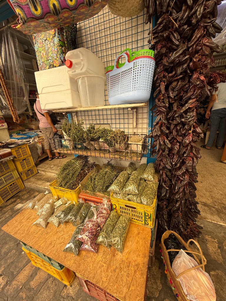 We drank from traditional white and blue Tunisian terracotta mugs – slightly porous and beautifully handcrafted. The clay kept our drinks deliciously cool, even in the midday warmth, each sip a simple pleasure that echoed centuries of Tunisian craftsmanship and refreshment.