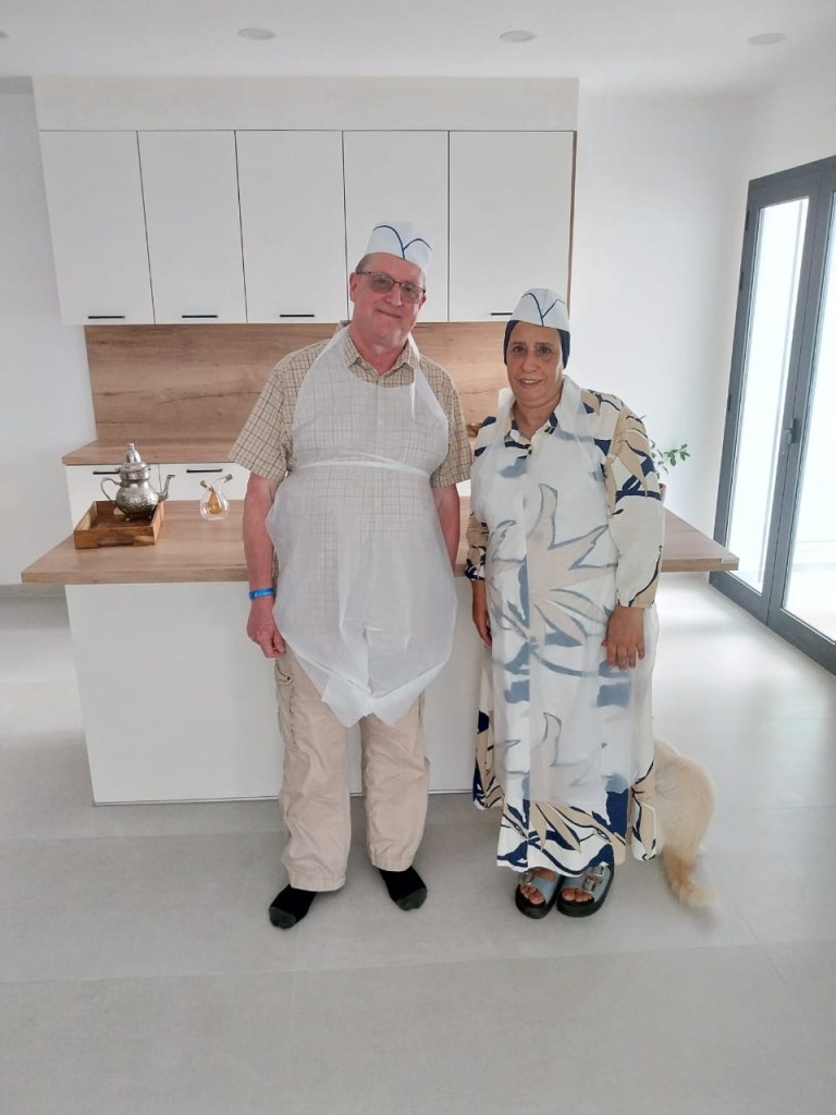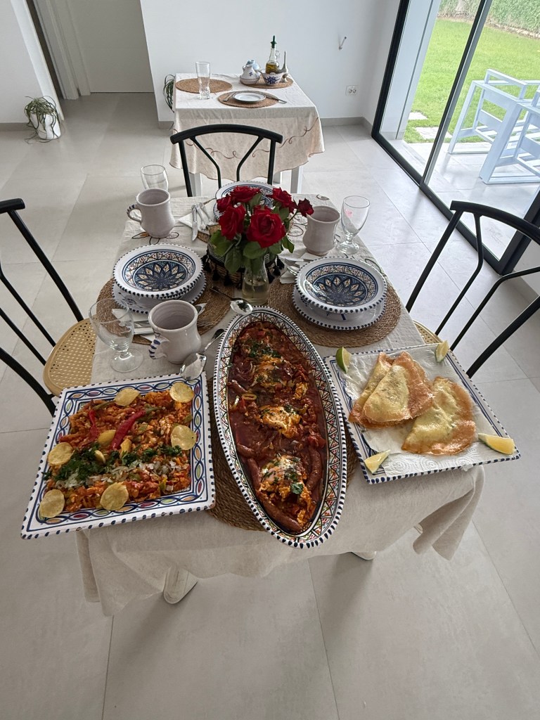 Nisaf was nothing short of magical – a chef imbued with talent and generosity, guiding each step with a graceful confidence that made every new technique feel within reach. With Nabil’s able hands and his effortless translation between languages, learning was transformed into pure delight; culinary secrets became stories, and the kitchen itself pulsed with laughter and the easy rhythm of shared discovery. As we finally sat down to savour the feast we’d created, each bite shimmered with the flavours of Tunisia, rich with memory and promise. I left the table not only filled with the most delicious food, but also with a new treasury of knowledge and inspiration – thirty genuine recipes tucked eagerly into my bag, ready to carry the vibrance of Tunisian cuisine into my own kitchen, time and time again.