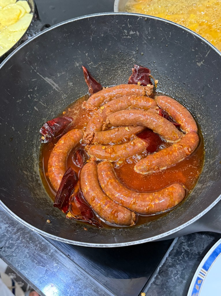 After the market, we retraced our steps to the car, our bags now heavy with promise. Yet the adventure wasn’t done: on the way to Nabil’s home, we visited a delightful series of specialist shops, each one a treasure trove in its own right. There, we picked up freshly made harissa, fiery and aromatic, plump merguez sausages, and glistening olives. These final, carefully chosen ingredients would tie the meal together, their flavours echoing the spirit of Tunisia – generous, bold, and unforgettable.