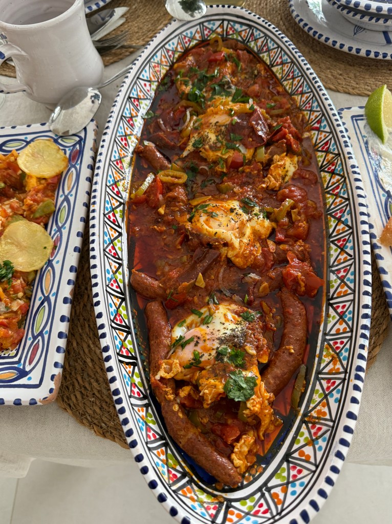 My menu reflected my longing for authenticity. Ojja was to be the star: beloved in Tunisia, this dish features eggs gently poached in a fiery tomato sauce, with green peppers, onions, and plenty of harissa. Most famously paired with merguez sausages, ojja brings together the hearty notes of cumin, paprika, and garlic, bubbling away until perfect for scooping up with crusty bread – a true celebration of Tunisian home cooking.