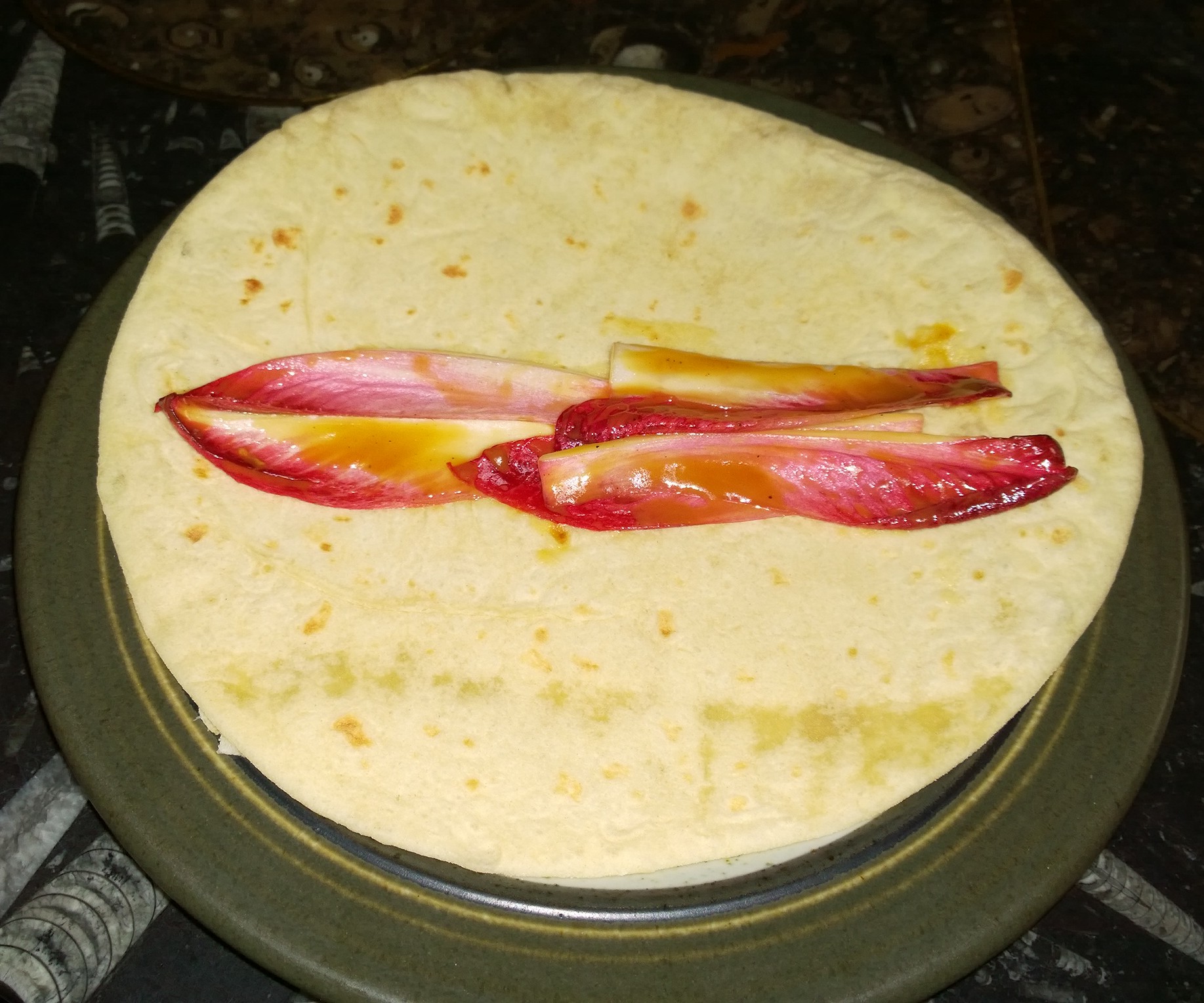 If you remember that multi-national comment I made earlier, well I made (pressed) the fresh Masa into Tortillas, they then got a quick fry on both sides before being stuffed with Chicken boiled in Chicken Stock (adds more flavour and keeps the meat moist), and rolled.