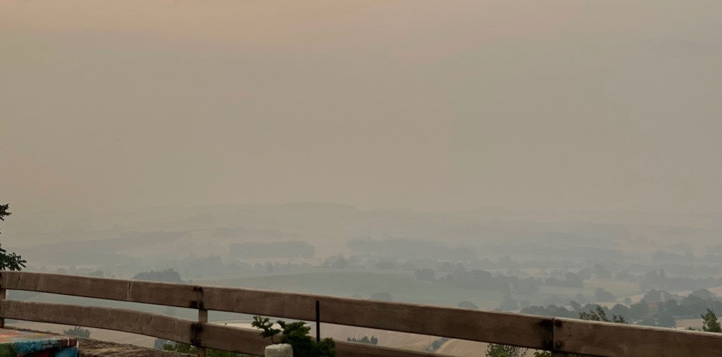 There was a handy veranda for quick breaks, the odd coffee or apéritif depending on the time of day. Our location at Bernards was about 147Km from Bordeaux and on one occasion the wind had changed direction and within minutes, the smoke from the tragic wild fires had covered the landscape, the stench of burning wood filled the air, it reminded us all of the effect that extremely high temperatures where having on the planet, and this part of France.