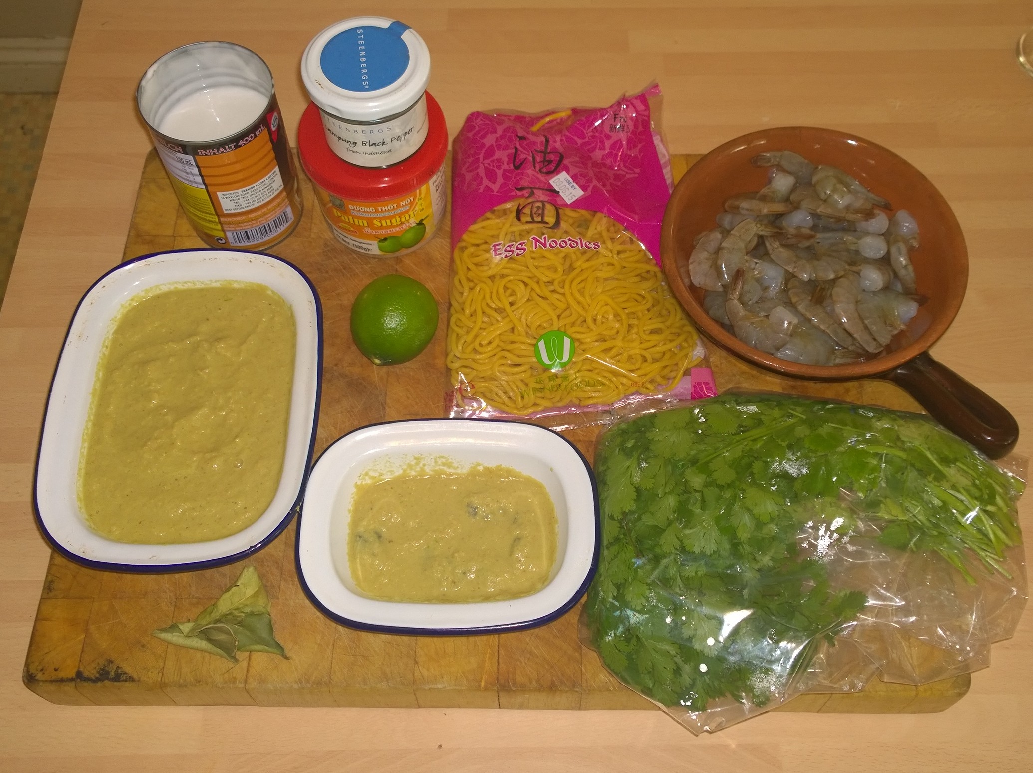 This particular dish, Prawn Laksa is derived from one by Ching He Huang, the recipe on the BBC website does have a couple of mistakes in it, namely it lists both Water and Chicken Stock in the ingredients but says to use water. I opted to forget the water and use some of the home-made Chicken Stock I prepared recently for an Indian inspired dish. Having checked on Chings’ website under the ‘free member’ section, the recipe is subtly different, but does not mention the water!