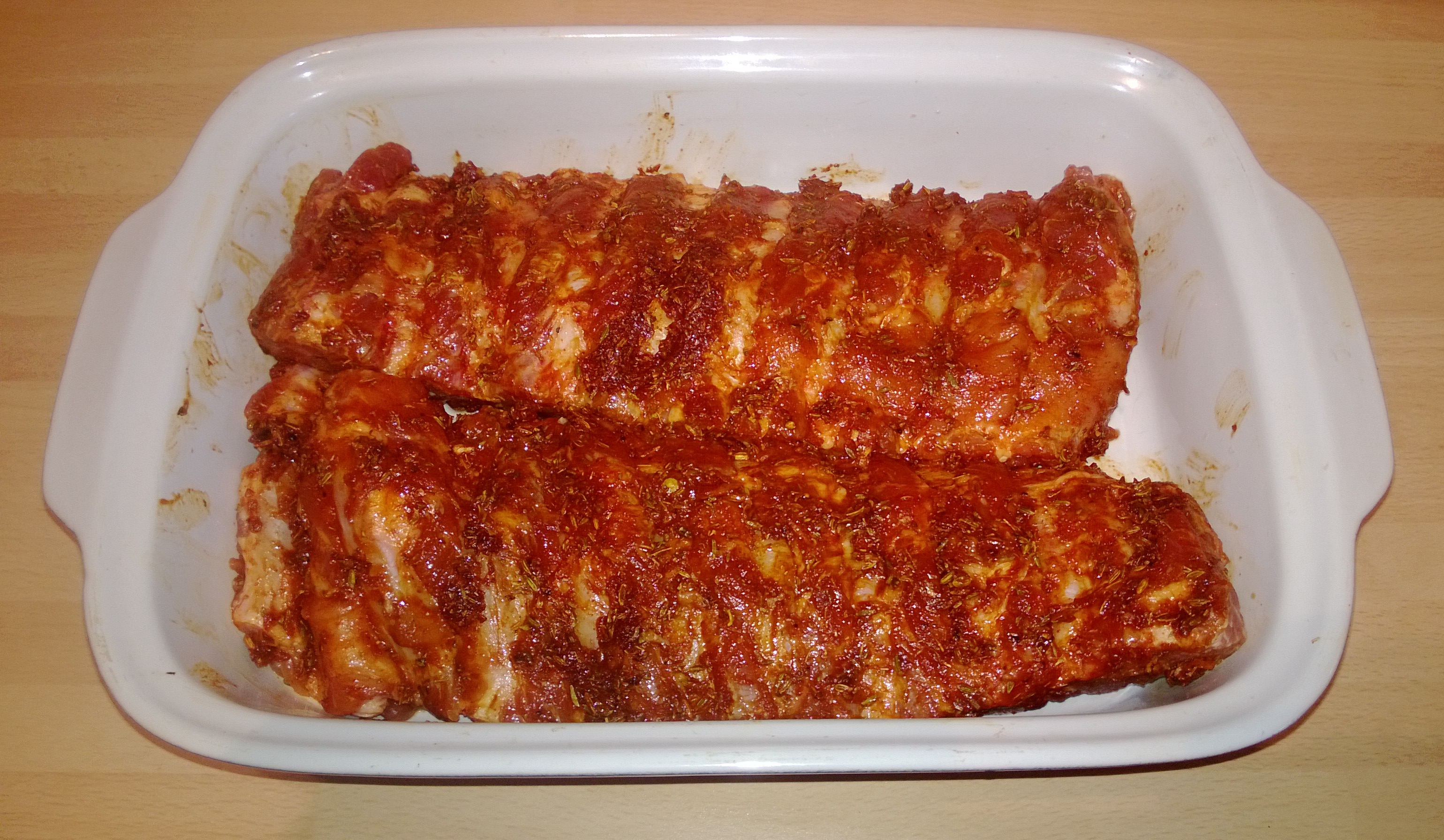 This is how mine looked before the final marinade was added to cover the exposed lamb shoulder.